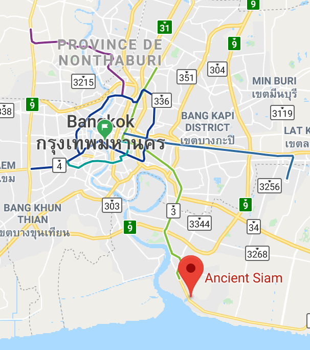 Ancient Siam est un parc situé à 30km au sud de Bangkok. Vous pouvez vous approcher en transport en commun, notamment en songthaew qui vous déposera pile au bon endroit. Sinon, le taxi est le meilleur moyen d’y aller. Toutes les informations sont ici : https://www.muangboranmuseum.com/en/. Ouvert de 9-19h.
